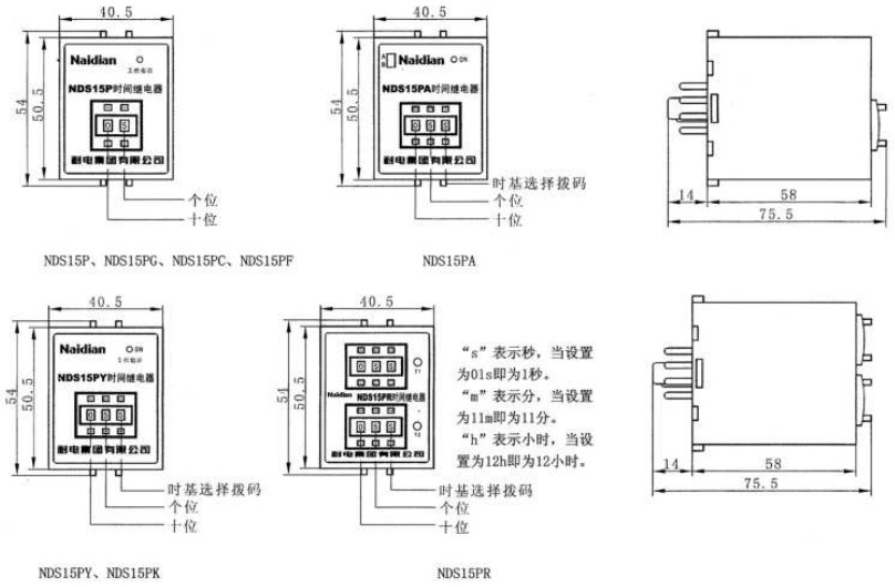 5、NDS15PA模式A、B可通过调节面板上的拨档开关选择,且应在产品通电前设置好延时时间及A、B模式。