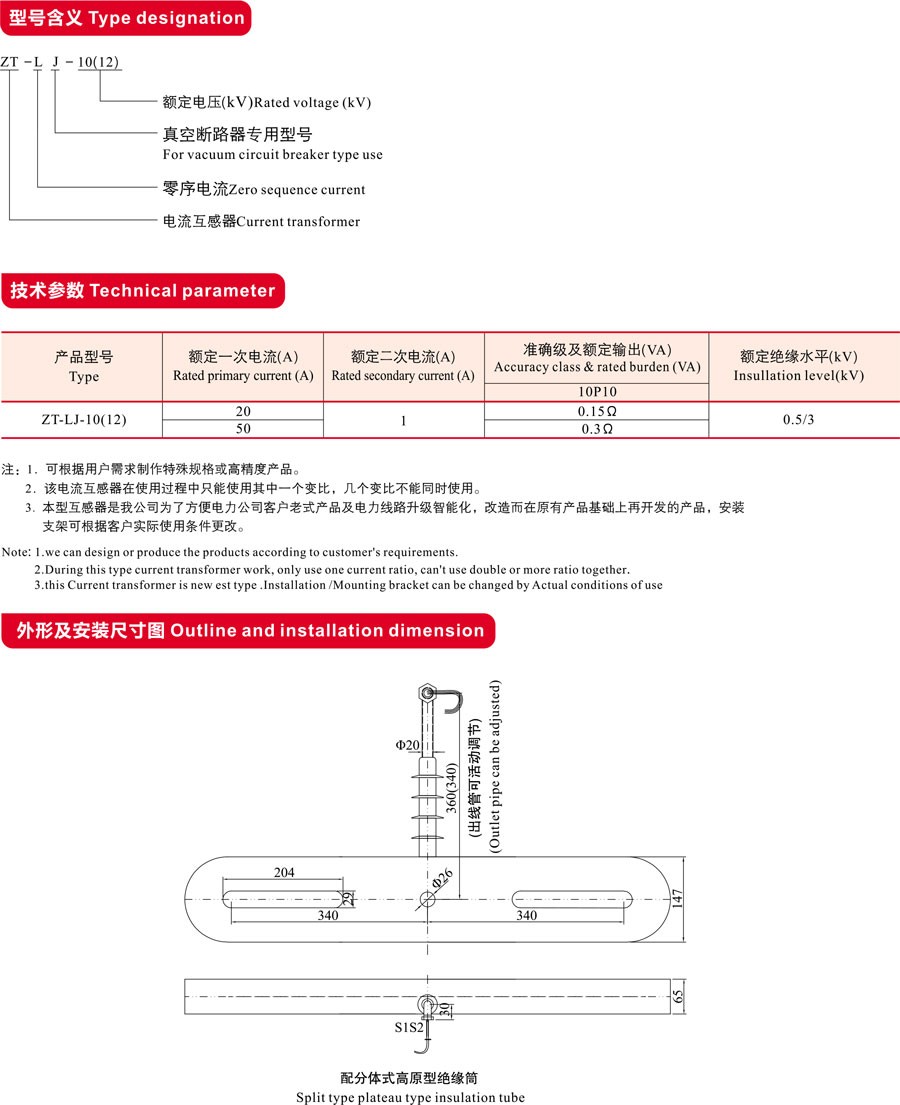 ZT-LJ-10(12)型零序电流互感器
