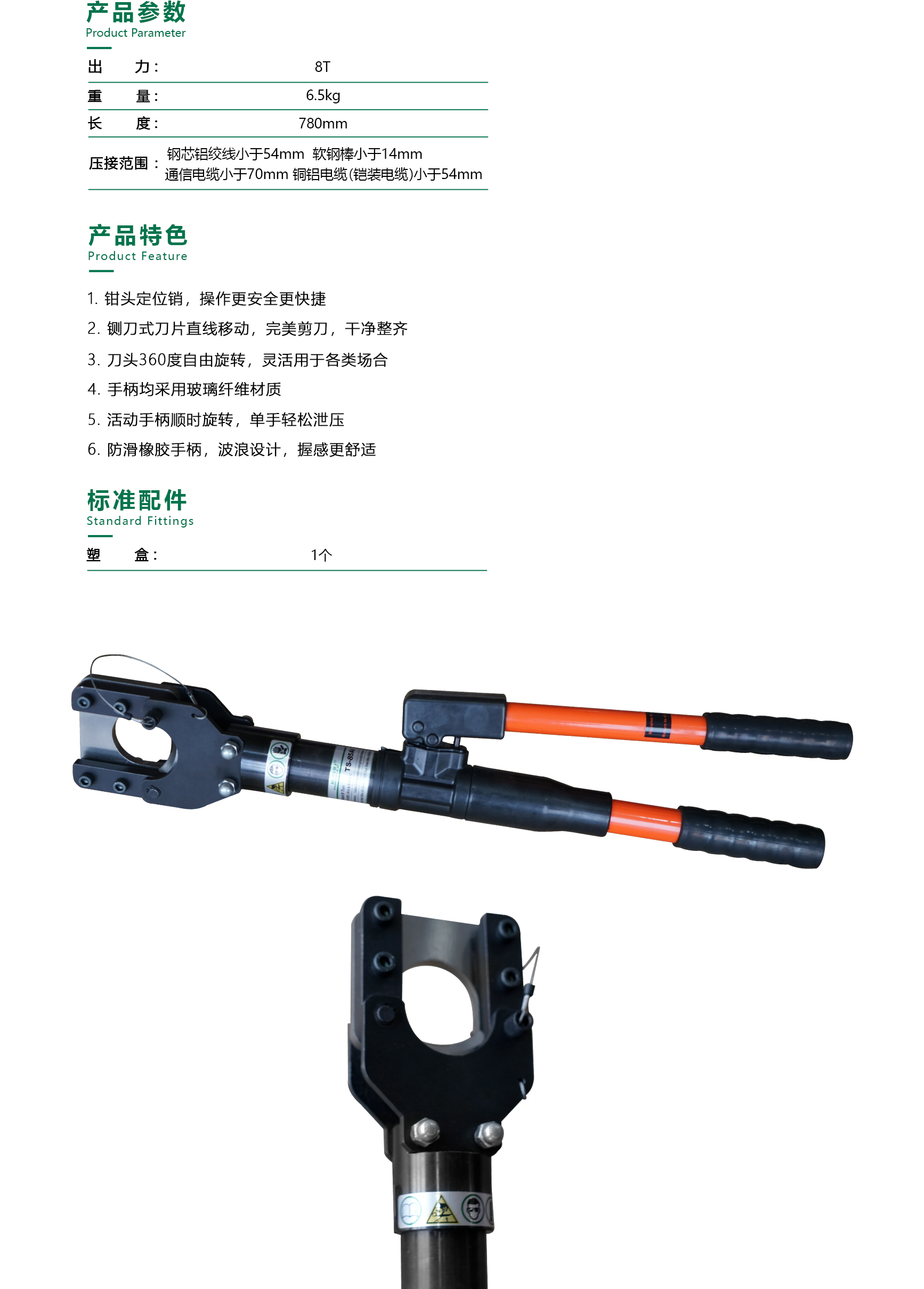 产品均为手动式液压剪刀,可用于剪切软钢棒,钢芯铝绞线,铜铝电缆(包括铠装电缆)。